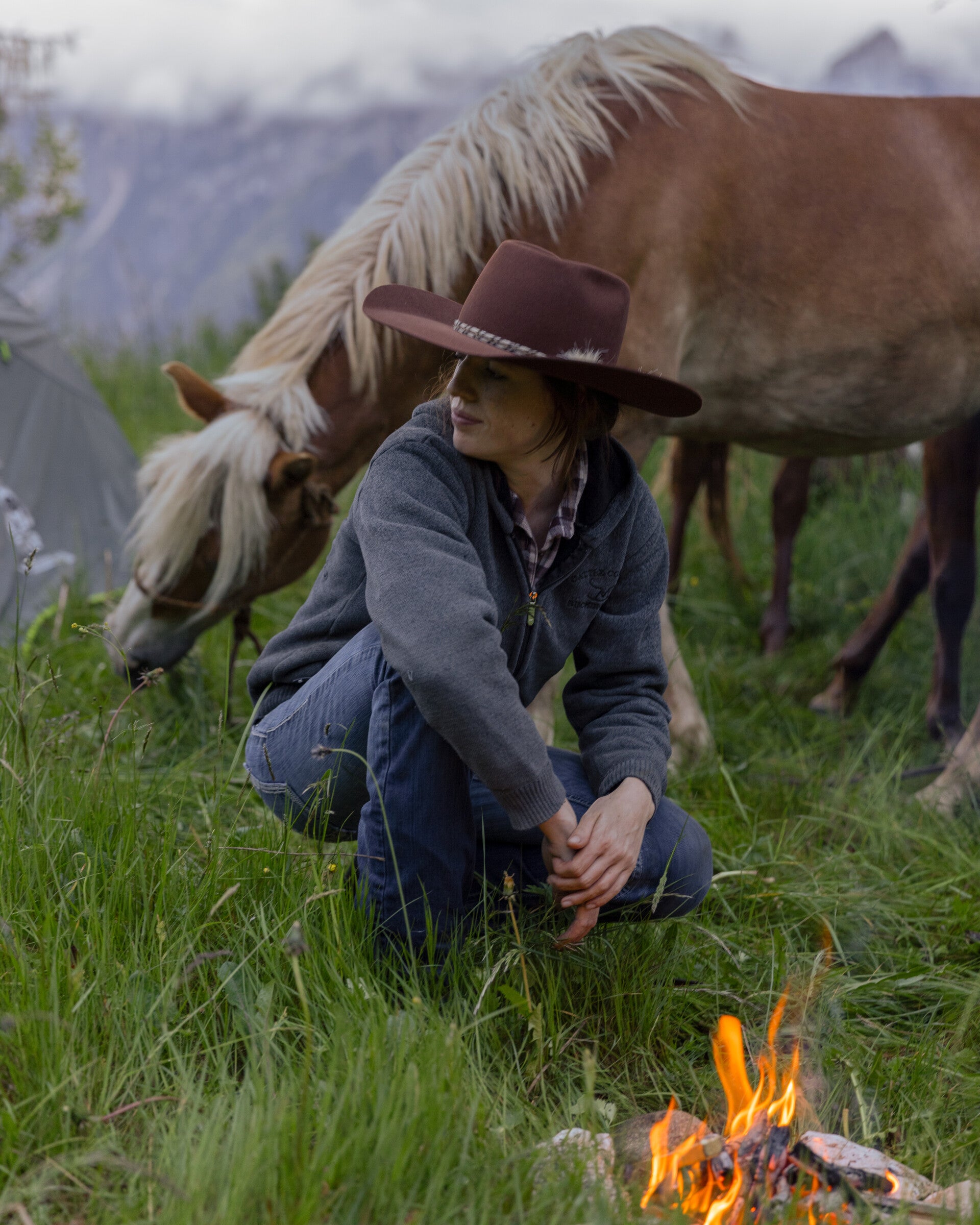 Pernottare in strutture attrezzate, dormire su un comodo letto e mangiare un caldo pasto sotto un tetto non sono comodità che l'abbiano mai attratta. A Sofia piace vivere la montagna ed ogni sua avventura immersa nella wilderness al cento per cento: accendere un fuoco su cui cucinare la cena, legare il cavallo a un albero e dormire sotto il cielo stellato aspettando le prime luci del mattino per poi rimontare in sella.